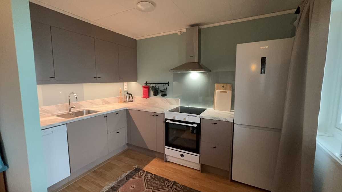 Nestled in the vibrant center of Narvik,this cozy and modern apartment offers the perfect blend of comfort, convenience, and stunning natural beauty.Whether you’re visiting for the world-renowned Northern Lights,the nearby fjords, or to explore the Arctic landscape, our apartment provides an ideal retreat after a day of adventure. For those seeking the ultimate Arctic experience, you’ll be perfectly positioned to witness the mesmerizing Northern Lights right from your window (seasonal).