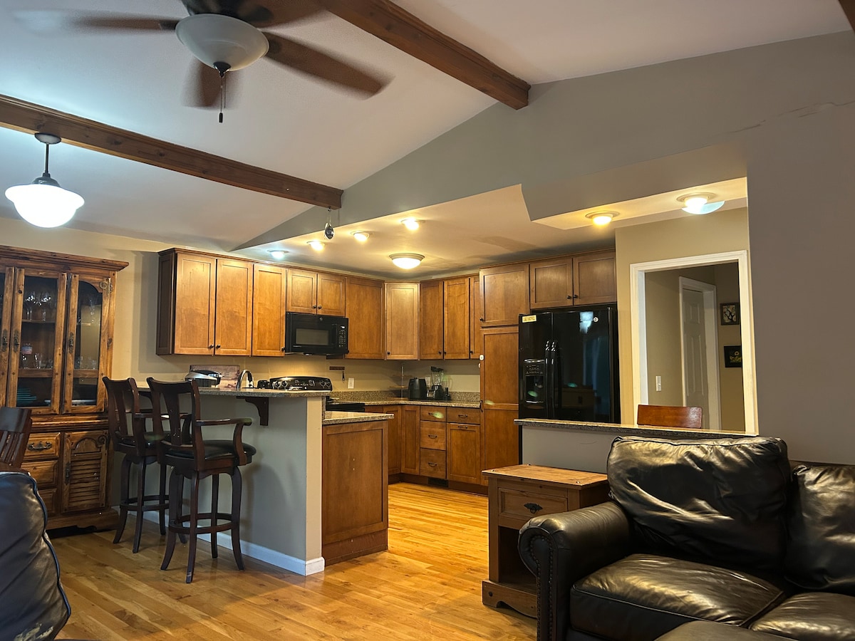 NEW IN 2021: New carpet, paint and mattress! Our one bedroom "apartment" has everything you need for a relaxing getaway. Room for air mattresses too. There is swimming, fishing, kayaking, and just plain relaxing here. We are close to hiking and waterfalls. Approximately one hour from UGA or one hour from Clemson for a getaway football weekend. Come enjoy and bring your pets too—they are always welcome!