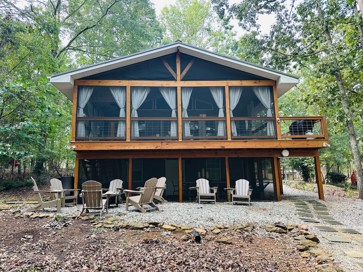 Featured in AJC as one of Georgia's top Airbnb's! We designed our lakefront A-frame cabin to provide the perfect getaway, and we love sharing our home with you. Wake up to sunrises over the lake while you sip coffee on the large deck or drink hot cocoa by the fire pit. Our modern kitchen also begs to be cooked in. In warmer months, enjoy swimming, kayaking, or paddle boarding off the private dock. Whether you want to relax or work on spreadsheets, you'll enjoy a beautiful view while doing so.