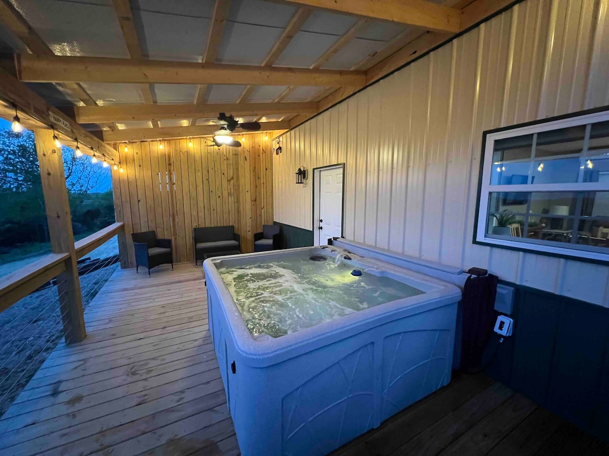 Couples Retreat @ Nolin Lake. Tiny Home Cabin. Perfect Romantic Getaway. Only 14 mi to Mammoth Cave. Private Hot Tub Nestled Behind Cabin on Wrap Around Deck, Surrounded by Nature. Relax By the Fire Pit Under the Stars or In One of the Rocking Chairs On the Covered Front Porch. Snuggle Up On the Comfy Queen Foam Mattress In the Loft. Window Allows for Sunlight & View of the Stars at Night. Private Boat Ramp Just 500 yards From Cabin. ~Washer & Dryer ~Fast Wi-Fi ~Outdoor Eating ~Grill