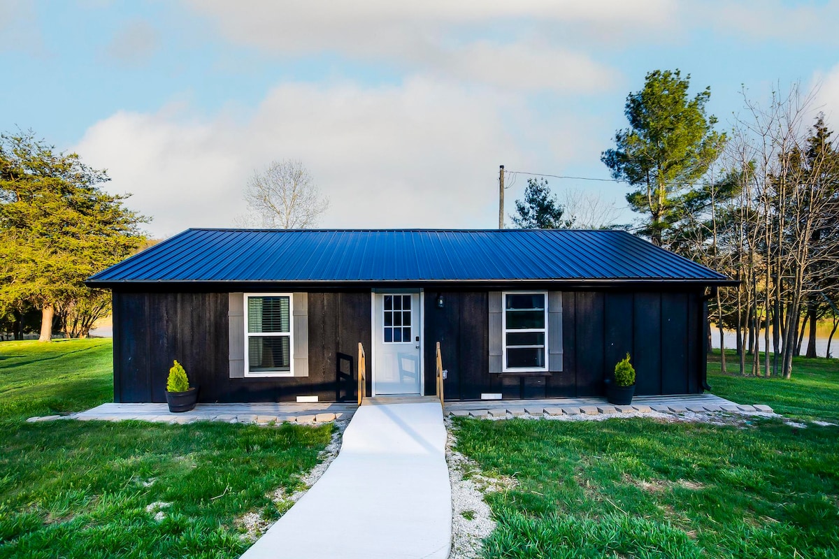 Relax in this peaceful, modern, country cottage with a spectacular view of the Kentucky landscape. This living space is equipped with all the comforts of modern living as well as a spacious backyard and free parking area. It has a master bedroom with a queen-sized bed and an upstairs area with two bedrooms each with a hanging bed. Located in the center of south-central Kentucky, it is 80 miles from Louisville and 80 miles from Nashville. Mammoth Cave National Park is only 13 miles away.