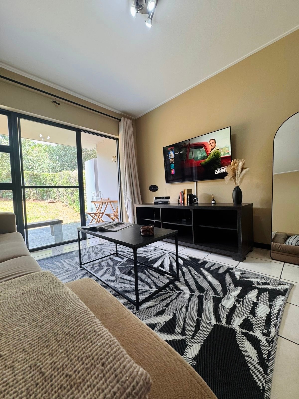 Modern, fully furnished, safe and quiet executive apartment in the heart of Melrose Arch. It's the perfect city getaway, and is suitable for both leisure and business travel. Uncapped Fibre Internet, safe and tranquil surroundings, a 65” TV (lounge) as well as a 40” TV (bedroom) both smart. Conveniently located within Melrose Arch shopping precinct with access to all stores and restaurants. Back up generator in the building, safe and secure private parking with 24 hour security 😊