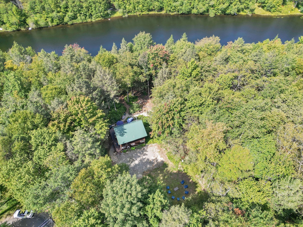 Serene rustic cabin in Colebrook, Ct in beautiful Litchfield County! Cozy King bed under skylight, queen downstairs, woodstove and all the comforts of home. Pure clean pond- swim, fish, canoe n kayak! Sits far from main roads on quiet back road. Can walk, run or bike to local trails or stay and walk the trail around the pond, have campfires outside in firepit! Cleaned by me, no crazy rules n and surrounded by nature! Private Great WIFI! Close to quaint ski resorts n dispensaries