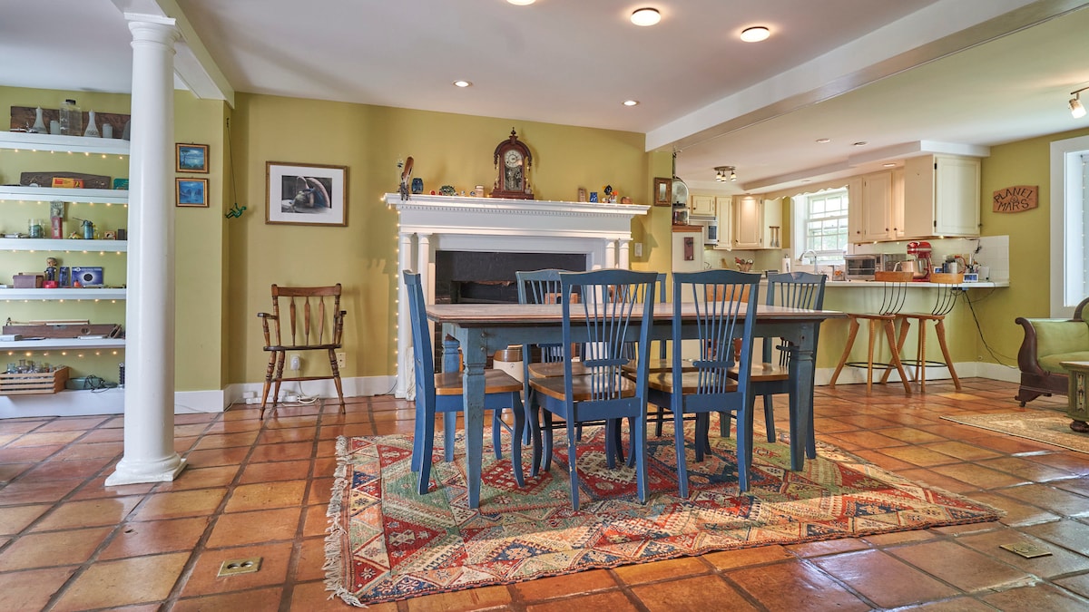 A Bright Dreamy Colorful Warm Little House. The kind of spot to look at the stars at night and enjoy the sound of running water. Surrounded by Waterfalls, Rivers & Forests, close to Ferryboats, Steam Trains, Castles & Beaches. Five min stroll to Romantic Chester Village, Shops, Art Galleries, 9 Restaurants, and Microbrewery. . I am an artist and have my studio in the barn! (take a peek to see the latest sculptures ) Use our Glass House by the river for Yoga, Meditation, Dining, Hammocks