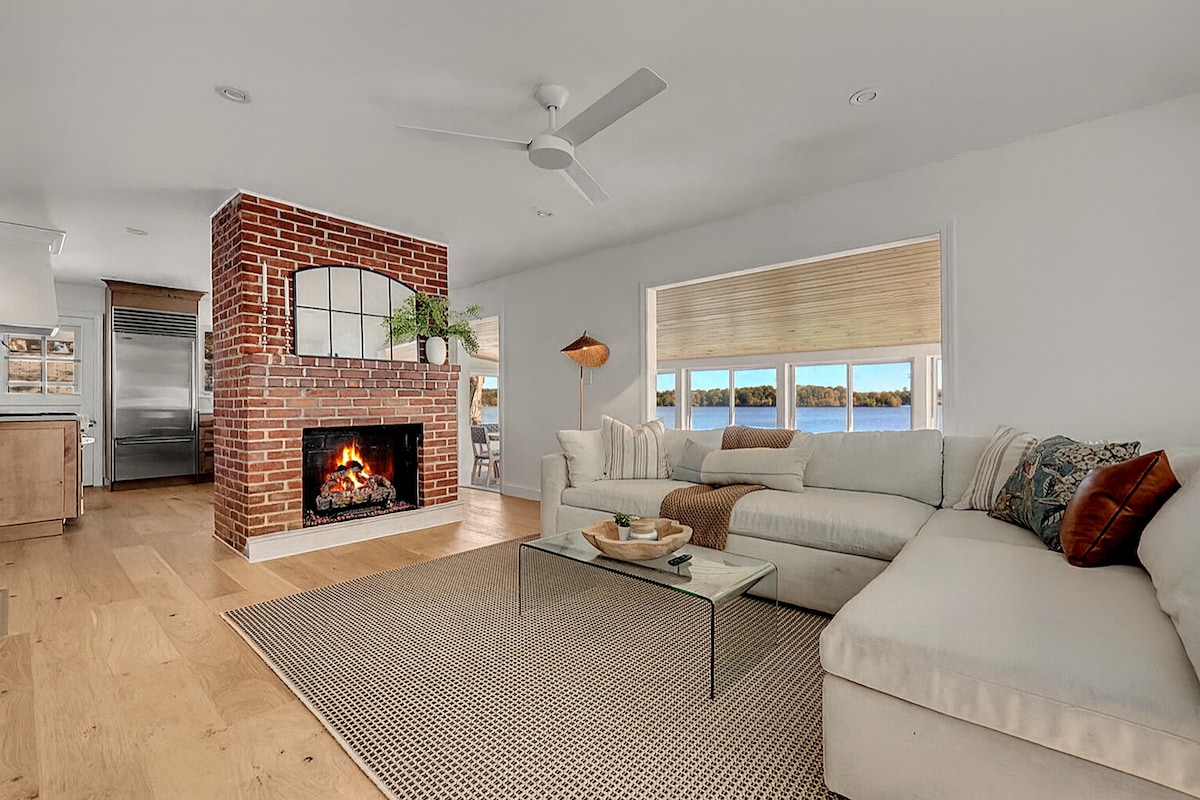 Lakefront jacuzzi for fall and winter! Enjoy the stylish comfort of our 3 bedroom/3 bathroom architecturally-designed lake home. The Luxe lake house features an expansive waterfront, outdoor jacuzzi, gorgeous primary bedroom suite w/ private shower and tub, artistic furniture, cozy fireplace, coffee bar, complimentary snacks, fast WiFi, large deck, fire pit, kayaks, vintage aluminum canoe, board games, and much more. Come stay at the Luxe lake house and make memories that will last a lifetime!