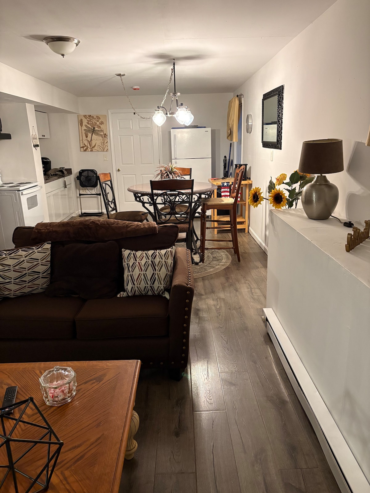 Oversized 1800sf apartment is a 2-story unit, front half of a 200-year-old former schoolhouse in Enfield's historic district. The antique colonial is set up as a side-by-side duplex with private apartment occupying the front 1/2 of house & the owner's unit in the back with a separate driveway entrance & door. EXTRAS: ❋ PRIVATE USE OF POOL & PATIO ❋ KEYCODE CHECK-IN ANYTIME ❋ COFFEE/TEA BAR WITH EVERYTHING NEEDED ❋ POPCORN MACHINE, SNACKS & DRINKS ❋ 4 TVs: YOUTUBE TV, MAX, NETFLIX, WIFI