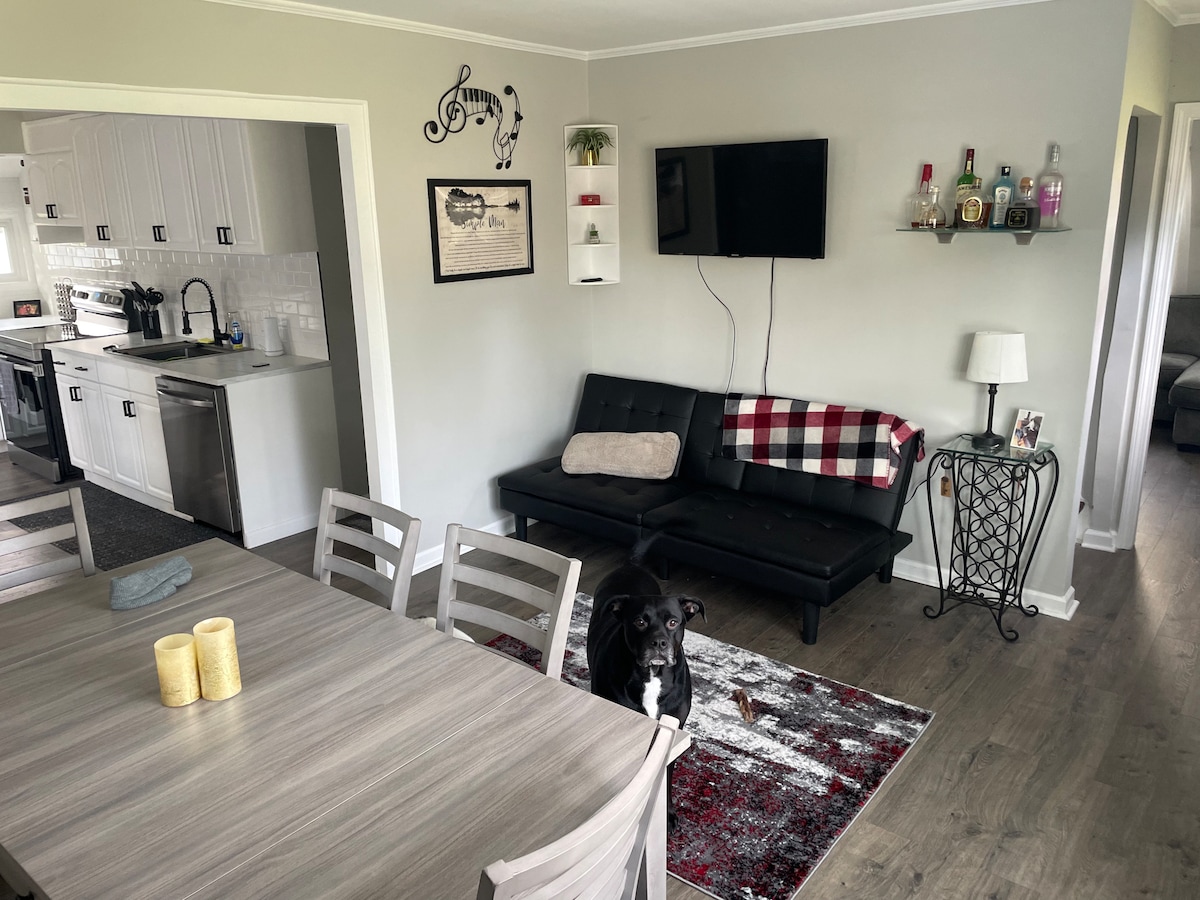 ENJOY DAILY CONTINENTAL BREAKFAST INCLUDED WITH minimum two night stay. Experience a cozy stay in our spacious 1300 square foot unit with included breakfast. Choose from muffins, bagels, bars and yogurt. Enjoy a relaxing afternoon with a cup of Java from your own Keurig. This unit features a comfy red electric red reclining couches and a flat screen TV. The kitchen area is equipped with a toaster microwave convection oven and fridge.