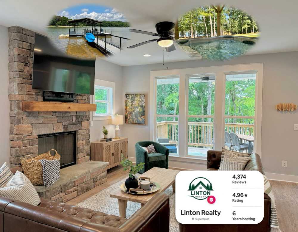 Gather family or friends for an unforgettable lakeside getaway in a spacious, amenity-loaded lake house in an ultra-private setting. Your group will have a great time on the dock using provided kayaks and paddleboards, fishing, swimming, and more. Bring or rent a boat. Relax on the lakefront screened porch and multiple indoor/outdoor gathering spots. Kids and adults will love watching movies and playing foosball in the game room. Make memories around your choice of beachside or stone firepit.