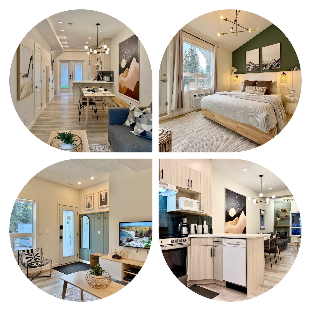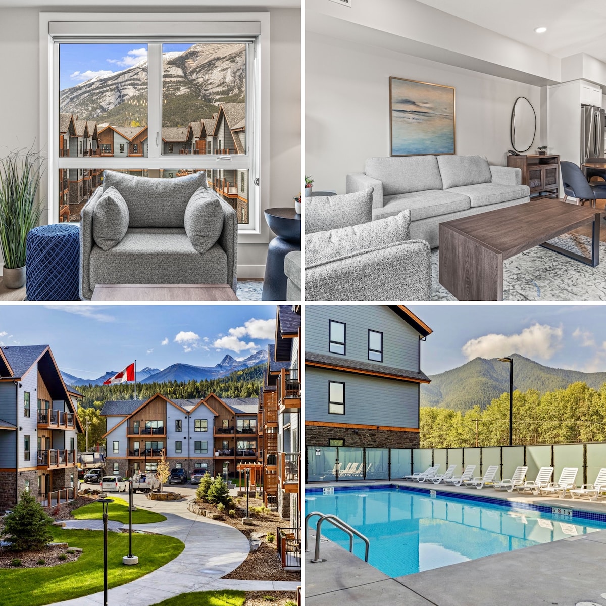 We'd love to host you in the Rockies! Amenities: 🛏️ 2 BR: 1 King, 2 Queens, 1 Sofa bed ❄️ ACs 🚗 Free parking ☕️ Complimentary coffee & tea 📺 HD TV 🛜 High-speed Wifi 🍳 Full kitchen 🍖 BBQ grills & Picnic tables 🛀 HOT TUB with views 🧺 app-operated laundry Nearby Attractions: ⛷️ 5 min to Canmore, 15 min to Banff 🚶 Hiking & biking trails nearby 🏌️ Golf courses, fishing spots, and helicopter tours 🏞️ Banff National Park & Lake Louise for year-round activities 💧Lakes nearby