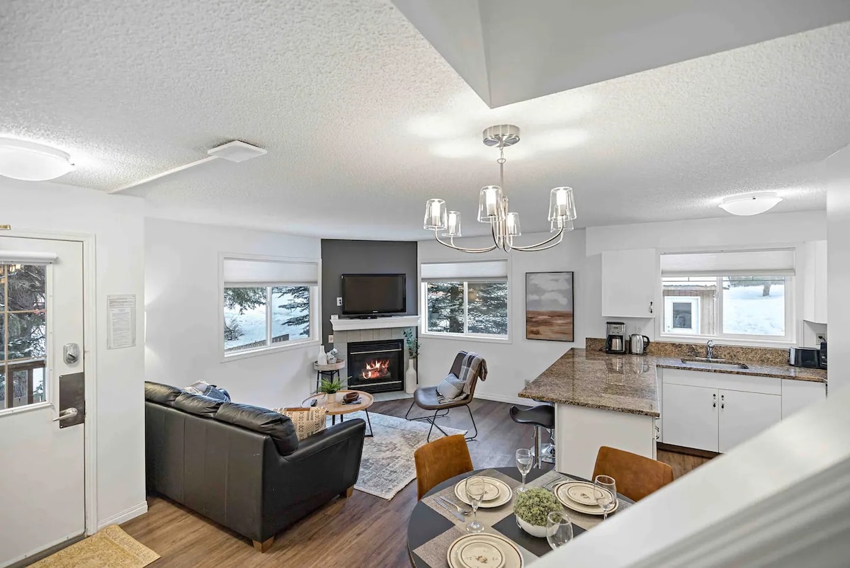 Mountain Paradise with 180° Views. This craftsman built complex boasts 3 private two-bedroom units, perfect for groups wanting their own space for a vacation, or to rent a unit individually. Picture yourself immersed in chic European styling with panoramic views of the rugged Canadian Rocky Mountains. Walk to restaurants, bars and shops downtown, or hop in the car for an easy 15-minute drive to Banff. NB: there is construction next to this unit so noise may be an issue during the summer 2024.