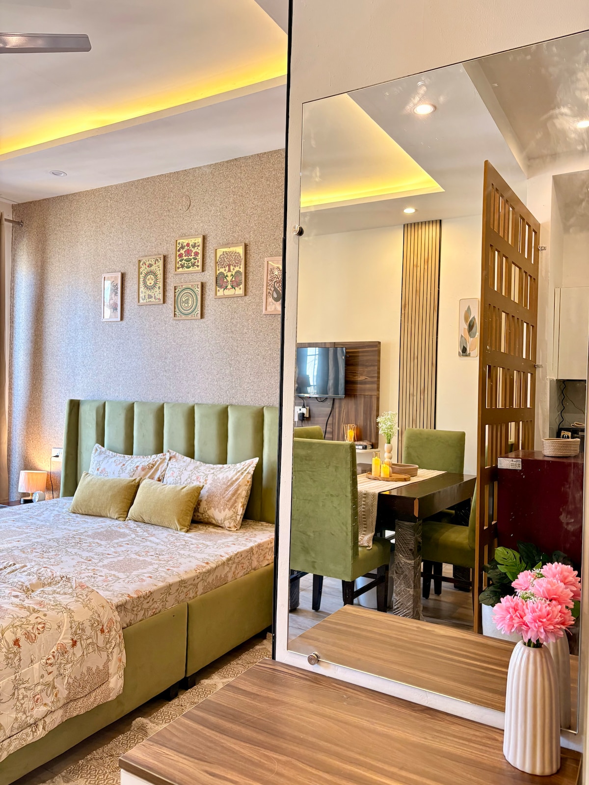 Introducing our exquisite luxury studio apartment: Nestled in the heart of the city, this opulent studio boasts modern elegance and unparalleled comfort. The open-concept design invites you into a spacious haven, bathed in natural light from the large windows that offer breathtaking city views. This apartment is on the 41st floor in one of the tallest sky scraper in Delhi - NCR. The apartment has a river facing view from the balcony!!
