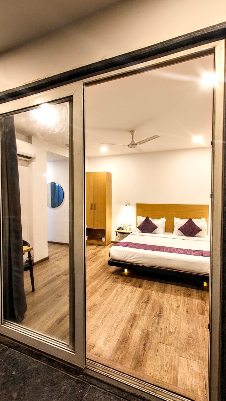 Experience our Luxury Hotel Room with Balcony in Sector 57, Gurgaon. Just minutes from Artemis Hospital, Golf Course Road, and Sector 54 Chowk Metro, it offers seamless access to the city. Perfect for medical, business, and leisure stays, the room combines modern comfort with elegance. Licensed to host foreign nationals. Early check-in will be subject to availability and chargeable Rs.500 as well as late checkout will also be the same with ₹500 added for every 3 hrs thereafter.