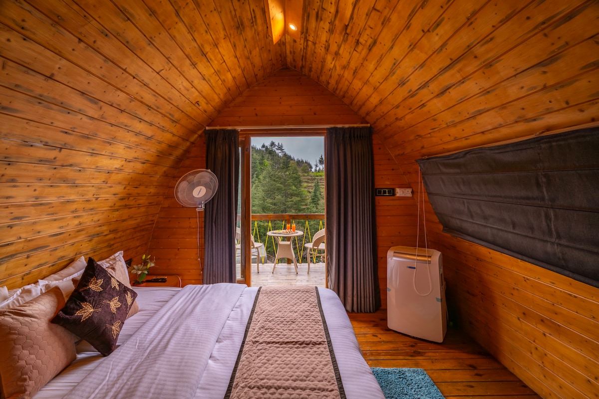 Relax with the whole family at this peaceful place to stay.A cozy A-frame tucked away in the peaceful greens of Morni Hills. Wake up to fresh mountain air, sip chai with dreamy views, and unwind under warm lights as the sun sets. Perfect little escape for some much-needed sukoon.