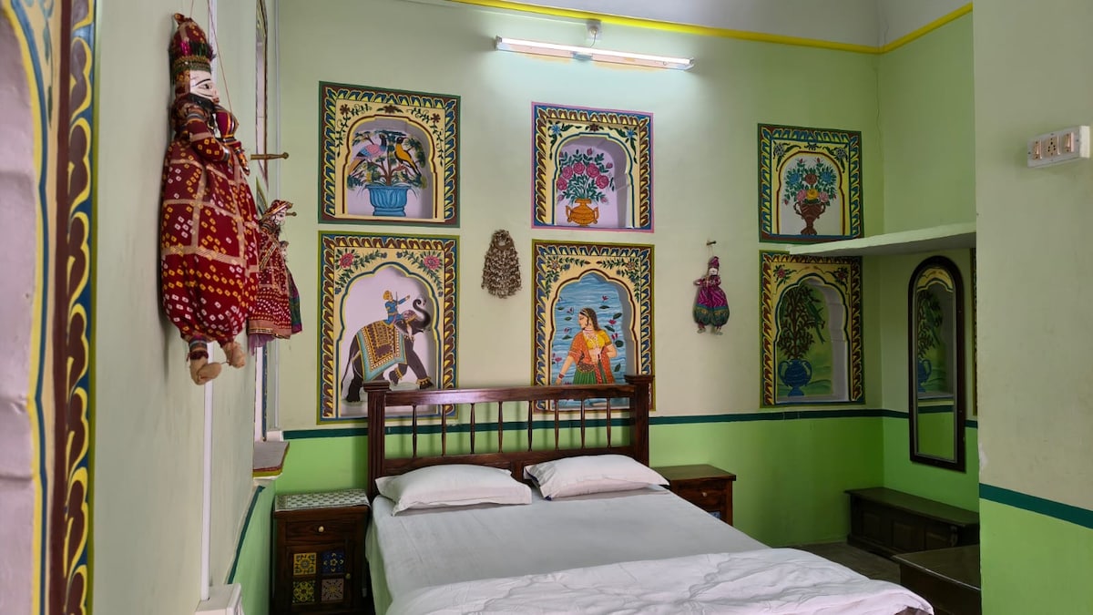 Vedaaranya Haveli stands tall and well-preserved in the beautiful heritage town of Ramgarh Shekhawati. Your stay here will include all meals (made to order) and freshly prepared with special care to hygiene & safety. It will also include a heritage walk in the old town, a welcome yoga or chanting session or a welcome massage. We also offer healing by sound and vibration -- connect with us to know more!