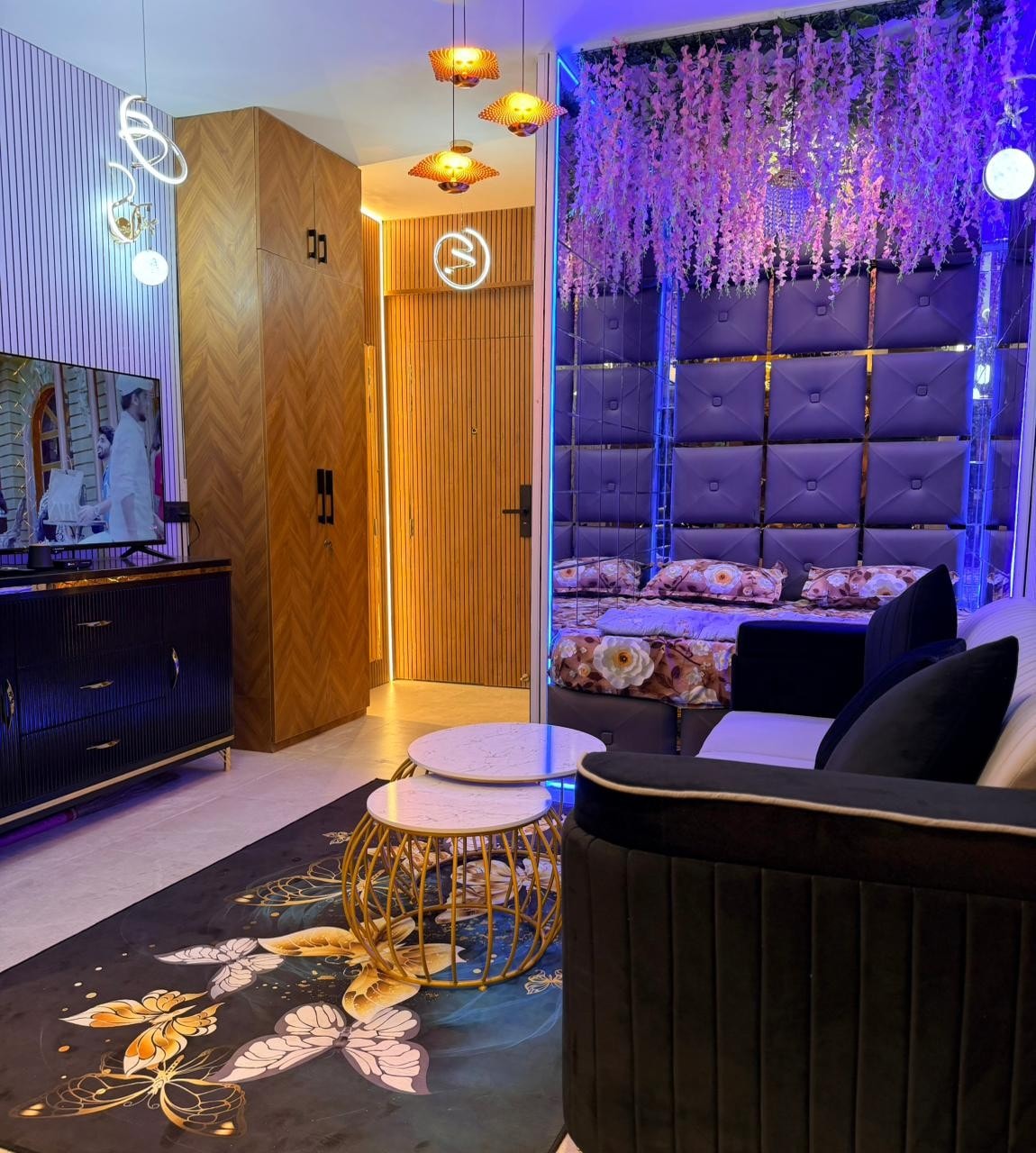Welcome to our luxurious urban Studio, a sanctuary of style and sophistication in the vibrant heart of the Gurgaon. A standout feature of our loft is specialty Black color scheme, which adds a touch of elegance and drama to space, making your stay comfortable & stunning. As you step into our elegantly furnished Studio, you’ll be greeted by sight of our plush black recliners. These two luxurious recliners are the centerpiece, offering a perfect blend of contemporary design & exceptional comfort.