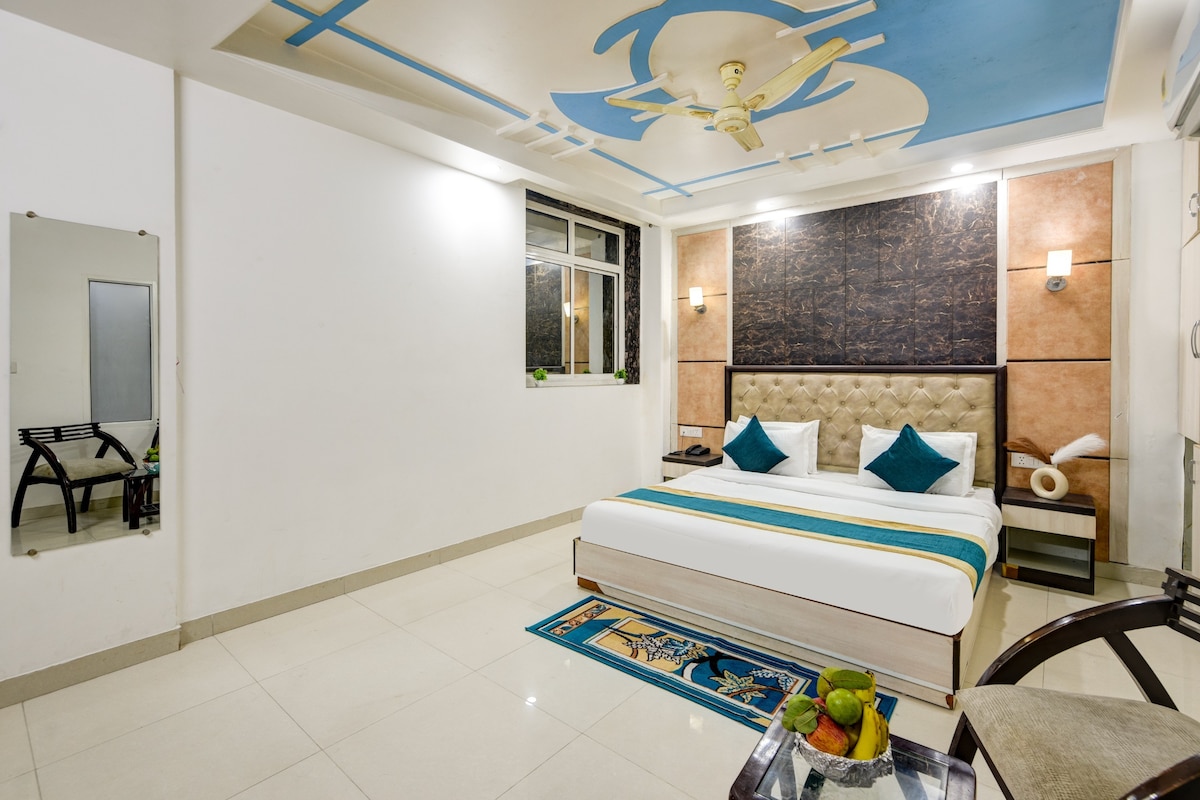 ◆Comfortable & stylish hotel room perfect for solo travelers or small groups. ◆Easy access to : ✔Sir Ganga Ram City Hospital – 500 meters ✔Apollo Spectra Hospitals – 700 meters ✔Karol Bagh Market & Metro Station – 1 km ✔Indira Gandhi International Airport – 19.9 km ◆Room includes a TV, mini fridge, and ensuite bathroom. ◆On-site restaurant with ample seating & air-conditioning. ◆Welcoming reception area with plush sofas, TV & lift access.