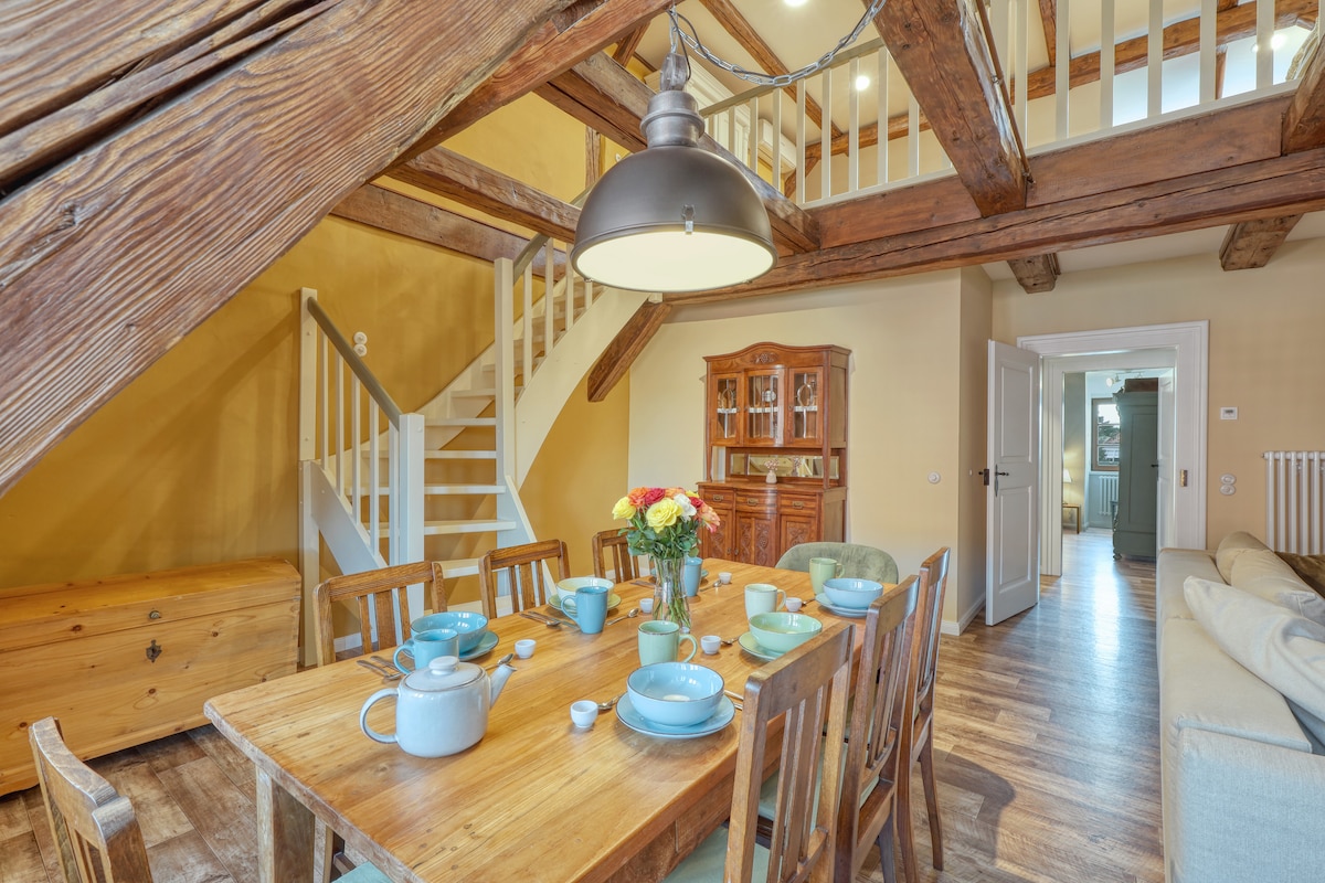 "Geschichte trifft Komfort: Wohnen in der Französischen Kommandantur" Die Brockenbahn zieht mit lautem Dampfpfeifen und rhythmischem Rattern direkt am Haus vorbei – ein Muss für jeden Eisenbahnliebhaber! Keine Sorge, geschlossene Fenster sorgen für Ruhe, wenn du dich zurückziehen möchtest. Ob du die quirlige Altstadt Wernigerodes mit vielen Cafés und Restaurants entdecken möchtest oder lieber die atemberaubende Natur bei Wanderungen und Ausflügen erkundest - hier ist für jeden etwas dabei.