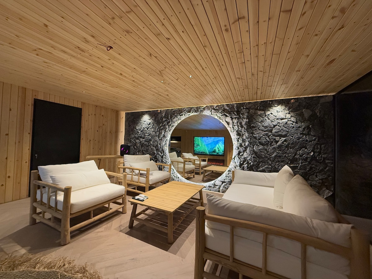 במיקום דיסקרטי , נכס מעוצב אדריכלית ועל ידי מעצב פנים ברמה של חו"ל מאובזר ברמת פרימיום , גקוזי מפנק , חדר רחצה ענק הכולל אמבטיה ומקלחת עמידה, 2 חדרי שירותים , טלוויזיה 85 אינץ' , טלוויזיה 65 אינץ' , מיטת שינה קינג סייז , קמין חשמלי , רמקולים איכותיים (ללא הגבלת רעש ) , צק-אין טלפוני,