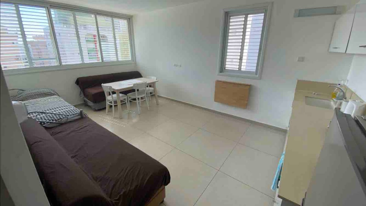 beautiful 2 room apartments fully furnished and modern, perfect for 2 people in a new building with 24/7 security, with swimming pool and a gym. 5 minutes walk from the southern beach of Netanya . no smoking and no pets