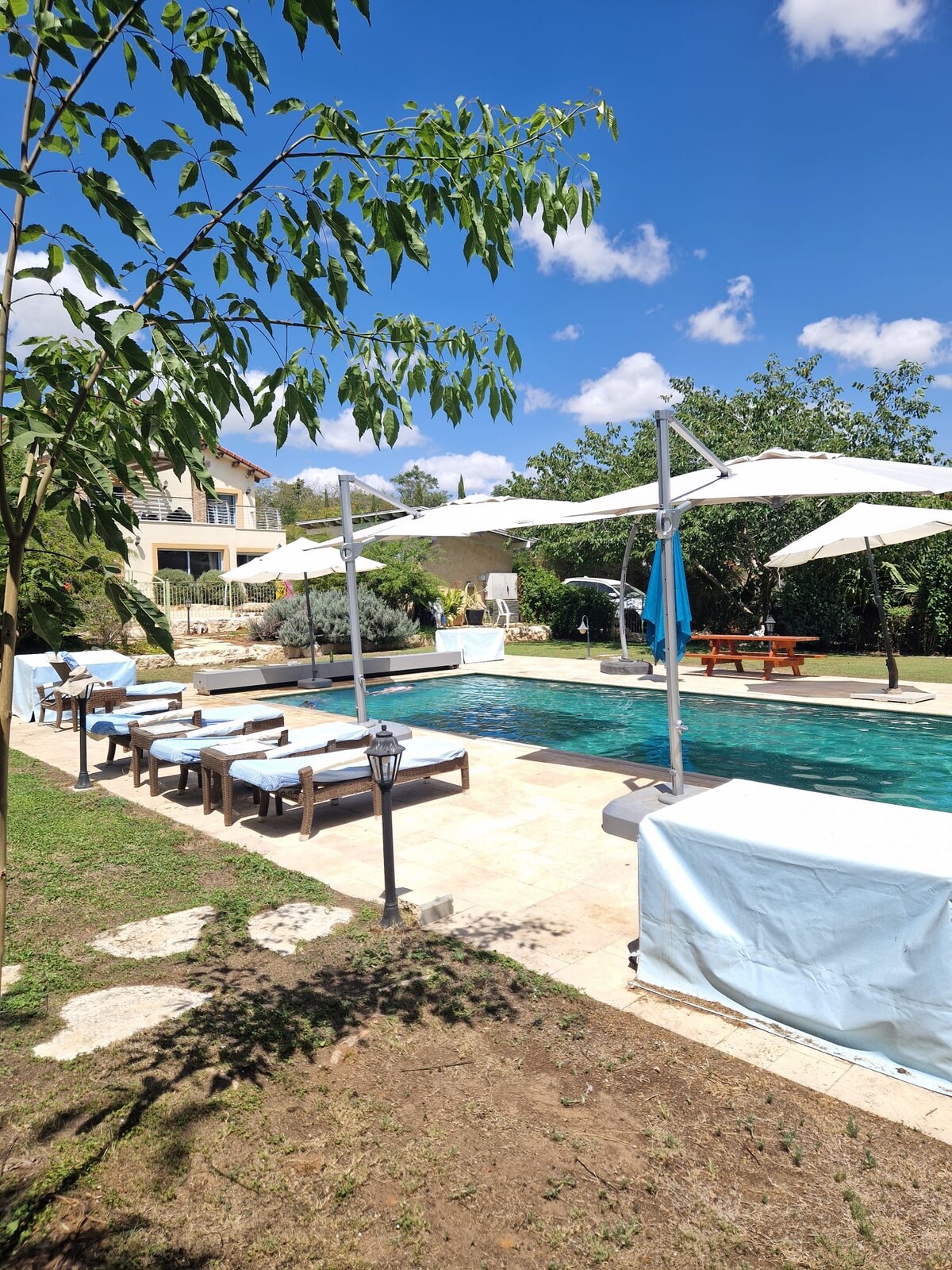 Nestled in Kadima’s peaceful countryside, our renovated retreat offers the perfect escape — just 15 minutes from vibrant Netanya. Surrounded by nature reserves and strawberry fields, our stylish poolhouse blends boutique design with pure serenity. Enjoy an enormous sun-soaked swimming pool, a state-of-the-art jacuzzi, outdoor shower, and lush private garden seating areas for relaxing. Whether you seek chic relaxation or quick access to beaches, dining, and culture — your dream getaway awaits.