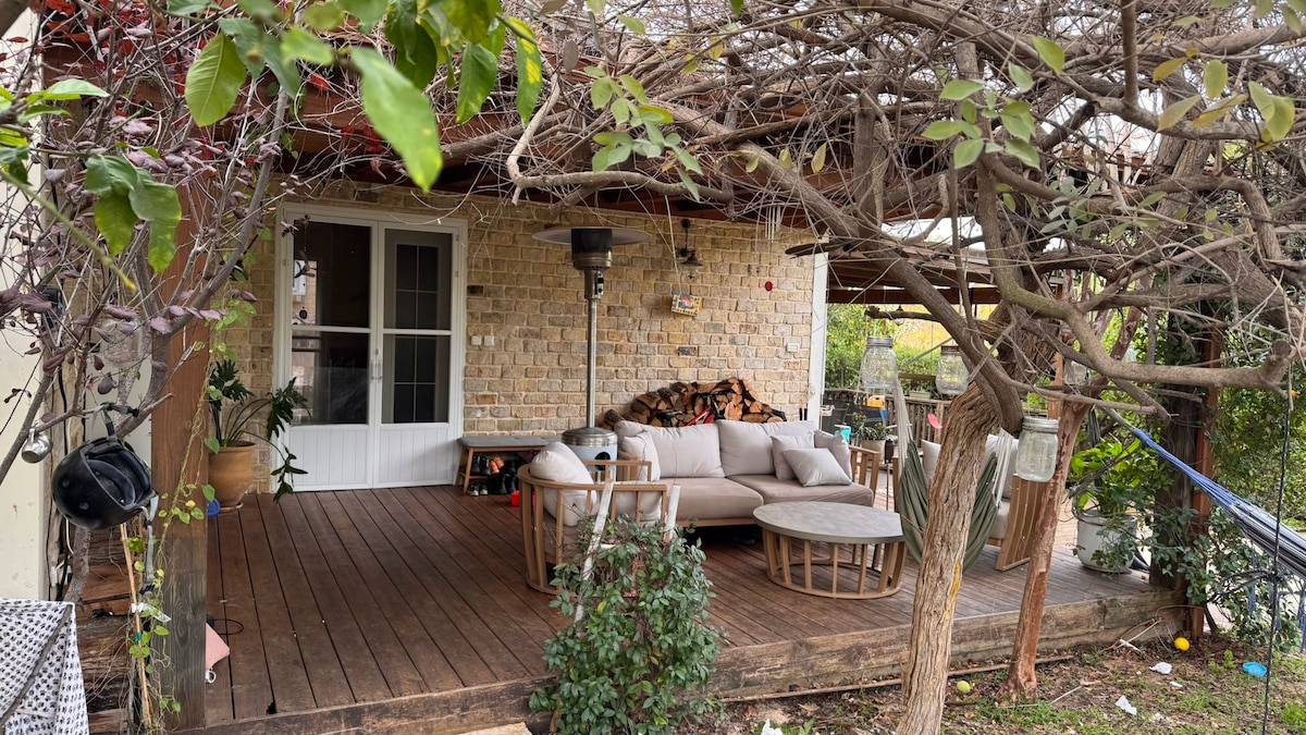 This is an enchanting guesthouse, well sized and furnished, located in the heart of the lovely Sharon region, just a few Kilometers from the mediterranean sea. Outside you can enjoy the beautiful private garden where you can have breakfast accompanied with chirping birds or dinner with candles and moonlight, afterwards you can use your private, romantic hot tub or enjoy the pool in the front garden. We also have free parking. The entire place is completely private and only yours!