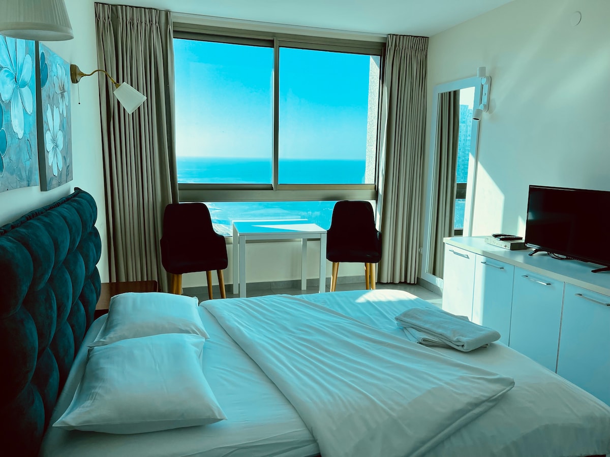 דירת נופש עם נוף פנורמי לים והטיילת מעוצבת ומאובזרת ממוקמת על קו החוף של נתניה