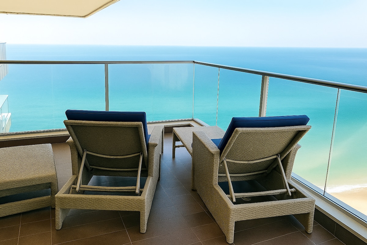 דירת נופש חלומית בקומה 23 – מעל לים,(כולל ממד) ברחוב ניצה מול גלי הים הכחולים, שילוב של יוקרה, שלווה, ונוף משכר חושים. חוויה בקו ראשון: דירה מעוצבת ברמה גבוהה, עם מרפסת רחבה שצופה ישירות אל הים הפתוח – כל זריחה ושקיעה הופכים להצגה פרטית שאין לה תחליף. מיקום : צעדים ספורים מהחוף הנפרד ומחוף צאנז, מרחק נגיעה מהטיילת, המרפסת: המקום שבו השמש פוגשת את הרוח, והלב מתמלא בשלווה. עיצוב מוקפד: כל פרט בדירה נבחר בקפידה – ריהוט איכותי, חללים מוארים, פינוק וסטייל. – כאן לא פשוט שוהים, כאן מרגישים.