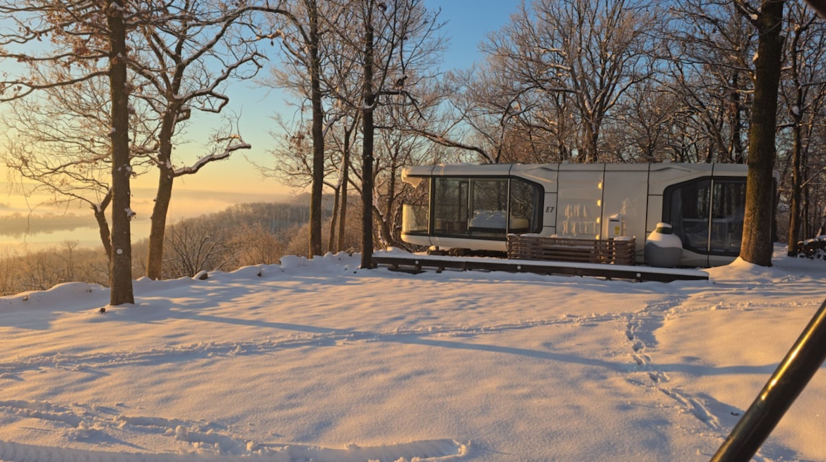 This cozy geodesic dome has its own private nook overlooking our second pond. Heating and air are a must in Oklahoma and we got you covered so you are comfortable all year long. You also get access to our beautiful outdoor shower and our unique compost toilet for a truly memorable experience. Included in the dome is a mini fridge, microwave, Kuerig coffee, along with bowls, utensils, and towels.
