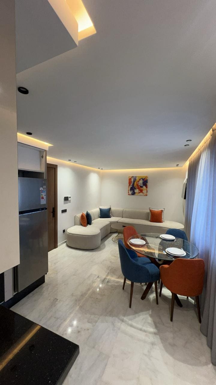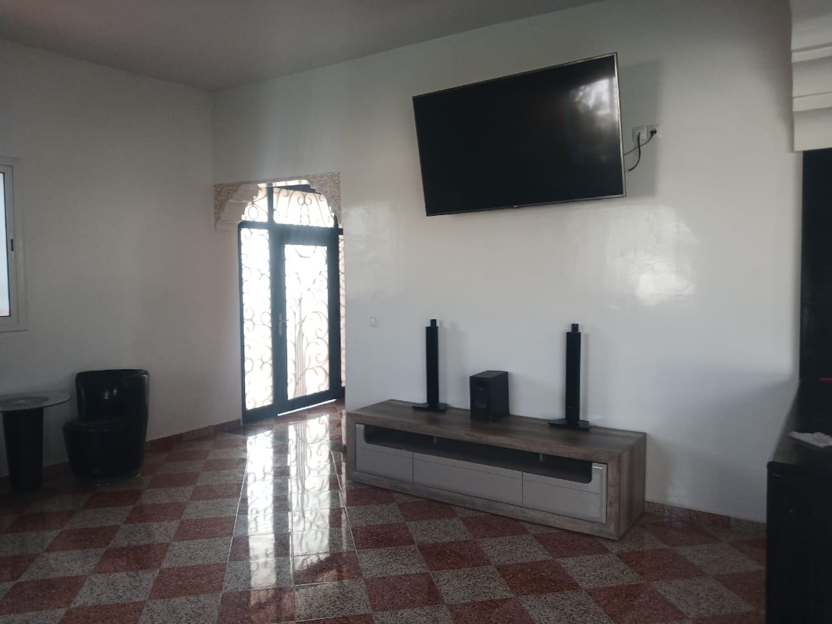 Art villa in Ville Verte, Bouskoura (Casablanca), by California Golf. 3 bedrooms (1 king, 2 convertible), 2 bathrooms plus guest toilet. Private garden and 1.65 m pool, sunny all day. Central A/C & heating, fiber. Smart TVs with Netflix and international channels in bedrooms and living room, plus projector and home cinema. Housekeeper 8am–6pm: daily cleaning, meal help. Secured residence, underground parking, self check-in. Resort access via pass. — DAR & STAY
