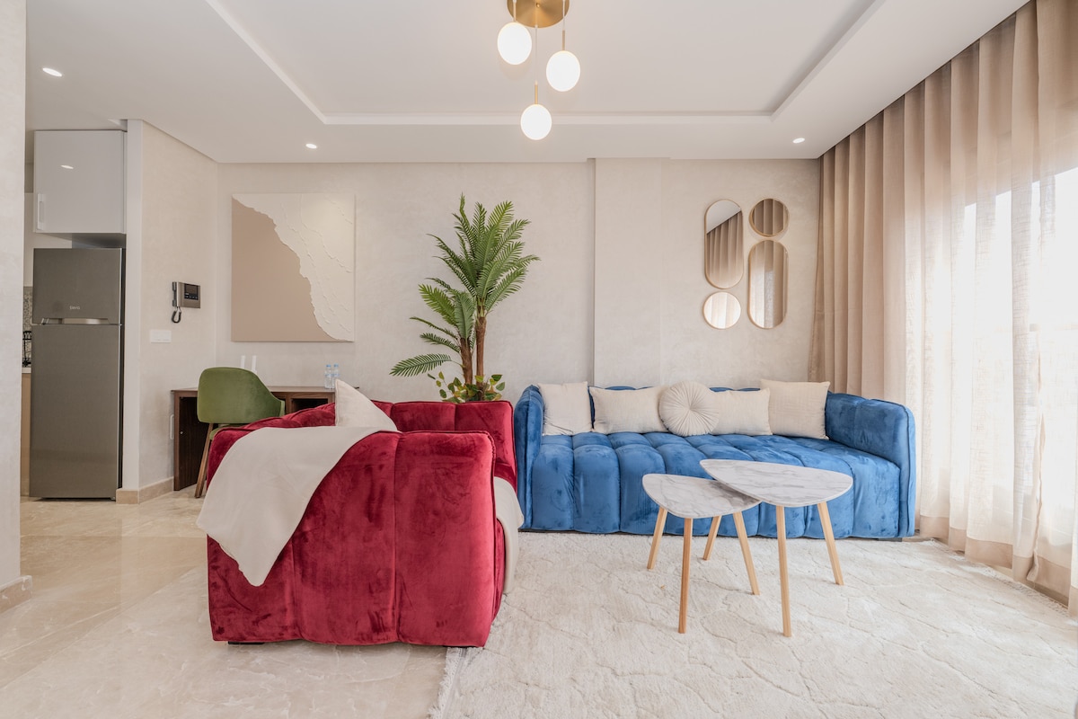 Unwind in our luxurious studio, where comfort meets convenience in one of Casablanca’s most desirable neighborhoods. Featuring elegant design, a private gym, and a spacious balcony—perfect for your morning coffee or enjoying breathtaking evening views. With top restaurants, shops, and must-see attractions just a short walk away, you'll have everything at your doorstep. Whether you're visiting for business or leisure, it's the ideal escape to relax and recharge.