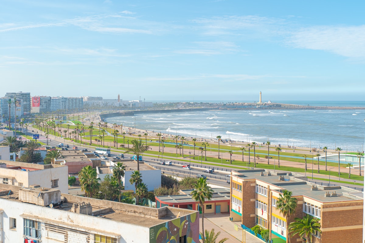 Appartement moderne et très bien situé à La Corniche, à seulement 9 minutes du Stade Mohammed V parfait pour les supporters de la CAN 2025 🚶À pied : - Mosquée Hassan II -Plages & front de mer : 2min -Restaurants, cafés, boulangeries et AnfaPlace : à proximité -Tramway & taxis : 5 min 🚗 En voiture : -Parc de la Ligue Arabe : 10 min -Twin Center & Hôpital Cheikh Khalifa : 10 min -Accès rapide aux autoroutes A3/N1 :2-3 km RÉSERVEZ DÈS MAINTENANT pour un séjour inoubliable à Casablanca !