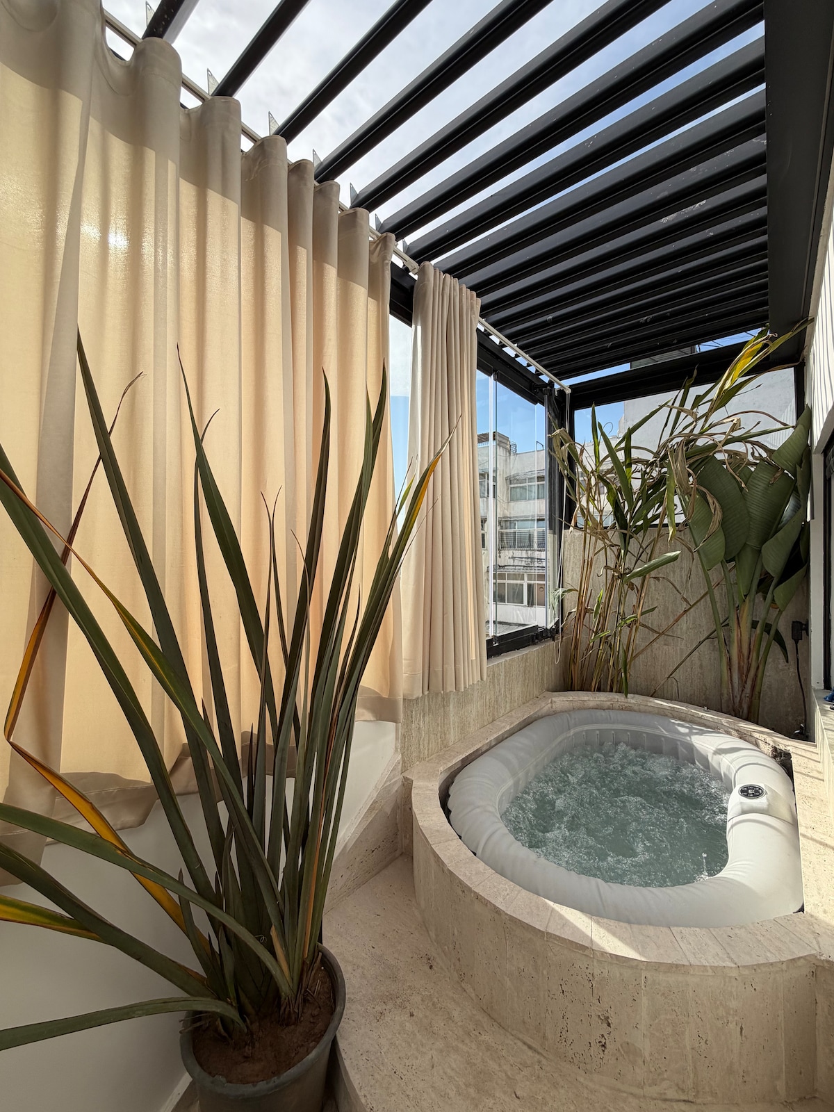 带按摩浴缸和私人露台的超级复式公寓