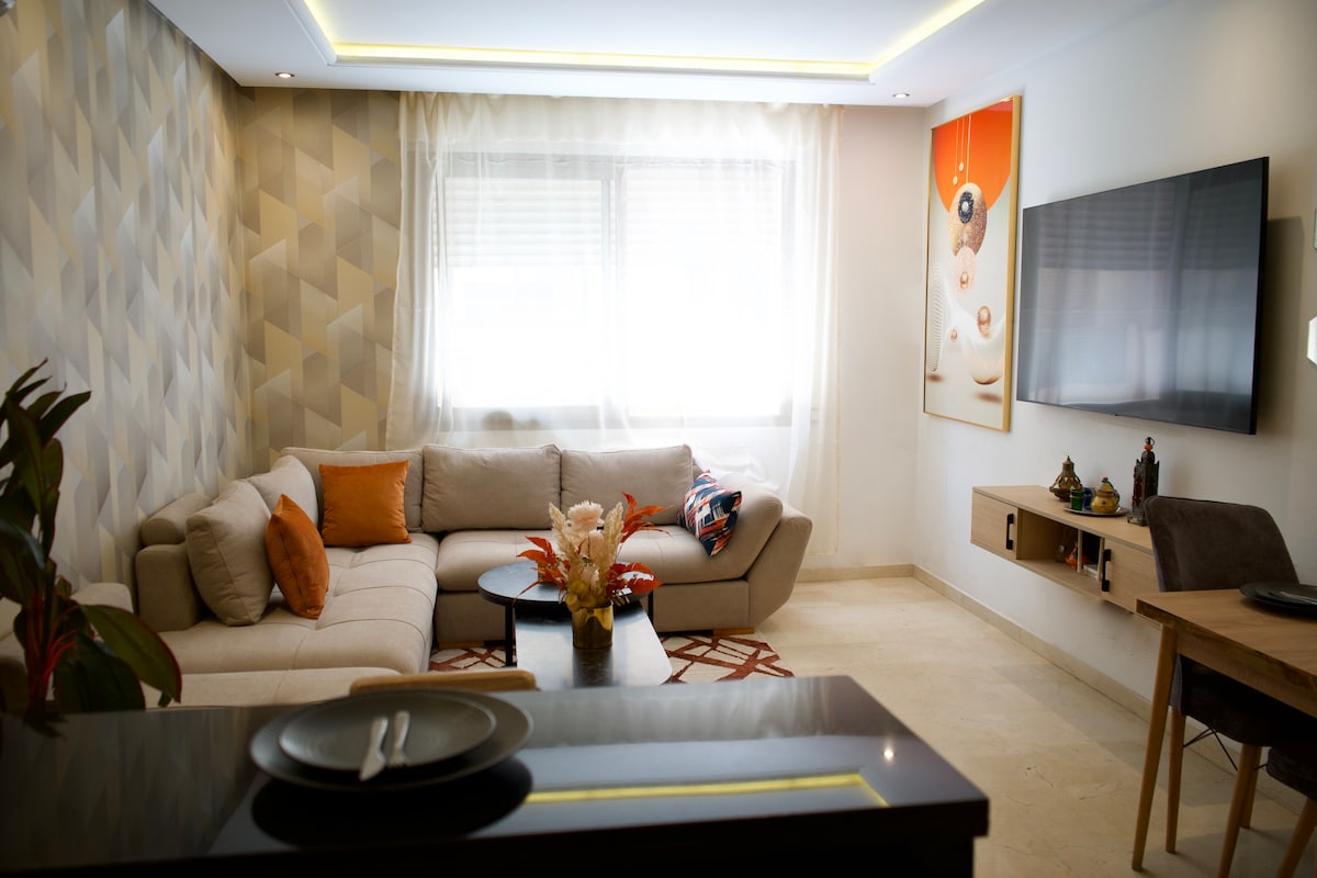 Appartement Neuf ! 1 chambre+salon 5mn à pied de la Mosquée Hassan II et sa corniche front de mer, idéale pour un jogging matinal. Décoré avec goût. Confort, Beauté et Propreté sont les top priorités. Meilleurs restaurants, cafés et commerces de la ville à proximité (5 à 10 min) Immeuble sous vidéo-surveillance. Capacité maximale : 3 personnes idéalement 2 adultes 1 enfant. 👶 Lit bébé disponible sur demande