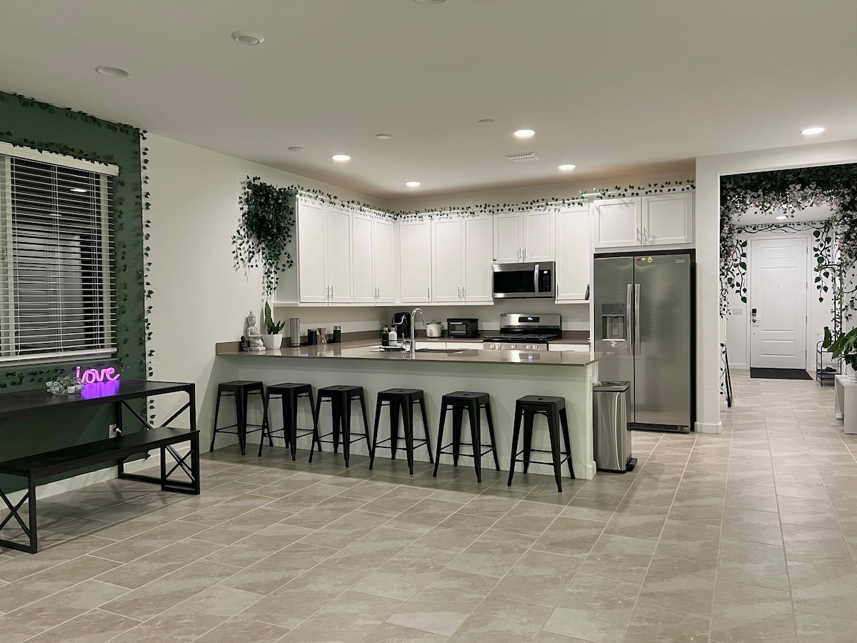Welcome to this 4 bed 2 bath spacious and modern home located in the community of Tartesso in Buckeye, AZ. It is 15 minutes to any restaurants/stores but there are food trucks daily in the community. • 25 minutes to Palo Verde Generating Station • Modern and stocked kitchen with appliances and a variety of spices available. • Laundry room equipped with detergent • Comfy beds and pillows • Smart TV with Netflix, Disney+ and more • iron/ iron board and steamer available.