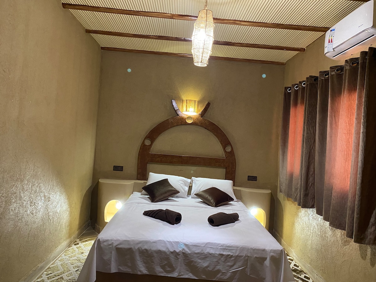 À quelques pas de la piscine de notre auberge, cet appartement cosy au style traditionnel est parfait pour un séjour authentique à Merzouga. Il comprend une cuisine équipée, une chambre confortable, un salon chaleureux et deux salles de bain pratiques. Bien qu’intimiste, il offre tout le confort nécessaire pour un séjour reposant. Profitez d’un cadre paisible et d’une ambiance unique au cœur du désert.