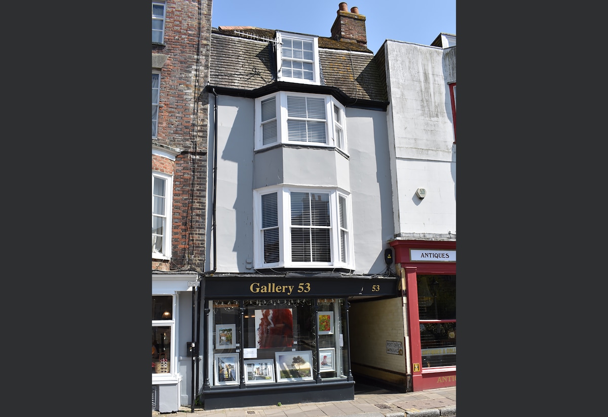 Gorgeous 5 bed Grade 2 Listed house in iconic High Street above our Gallery 53. It's brimming with character and filled with the artists’ original work. Formerly a successful four-star B & B, Gallery 53 is now available to rent in its entirety Nestled amongst independent shops, restaurants, pubs; 4-minute walk to beach and near East Hill for coastal walks It's on the parade route for Old Town events e.g “Jack in the Green”, Bonfire Night, Carnival week - all passing right under the windows