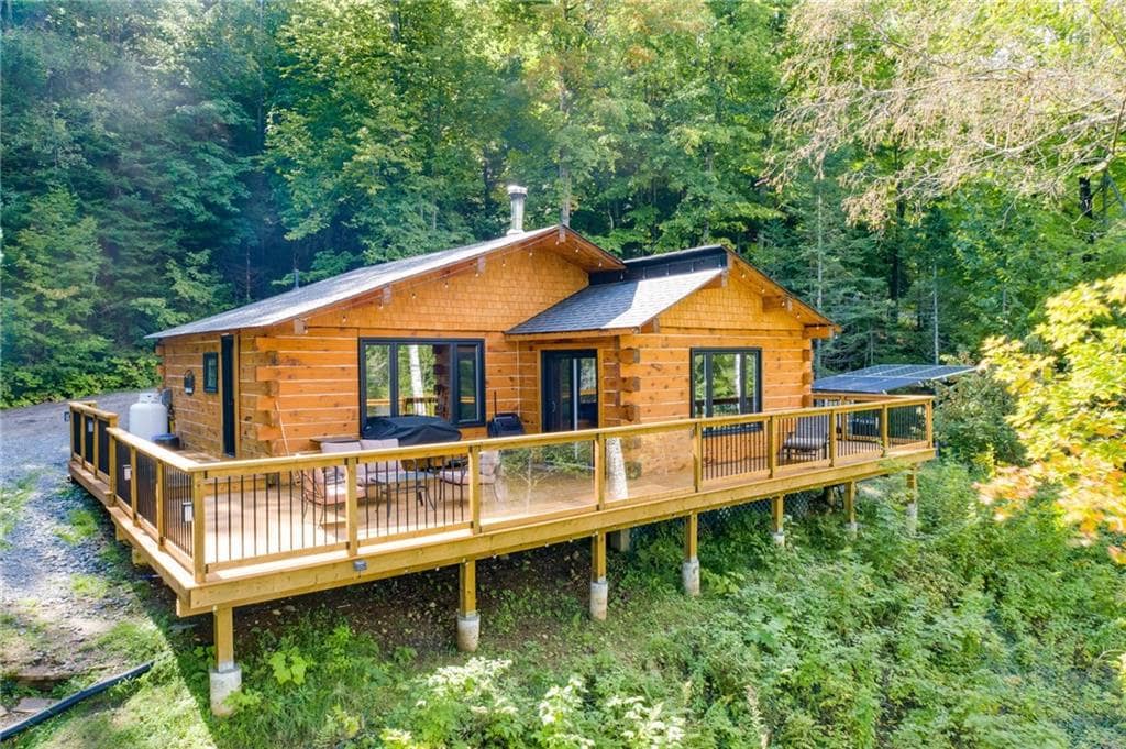 Come to Twilight Fox and enjoy sauna, hot tub, indoor fireplace all located in tranquil forest. Incredible nature experience in an elegant one of a kind cottage. Amazing Large A frame, barn house and bunk house all a part of one modern cottage. Cozy for couples romantic getaway but can accommodate larger groups/families as well. Immerse yourself in peace and tranquility of Incredible Madawaska River/Kamaniskeg . Unmatched peace of Algonquin like forest, and breathtaking water front.