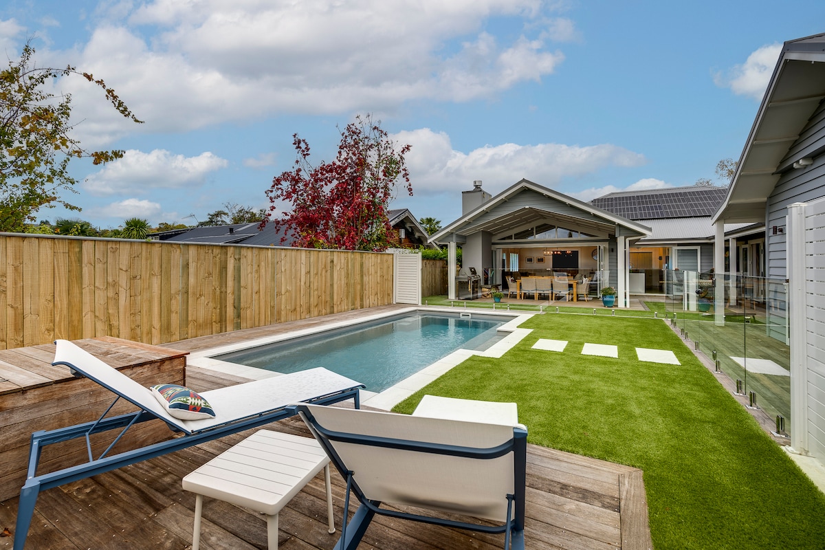 Wyatt House is an 1890 Villa in a rural orchard setting 5mins from Havelock North Village. Set in established gardens with a swimming pool, trampoline, pétanque court; perfect for the whole family. With 2 ensuite bedrooms Wyatt House can comfortably accommodate 2 or 3 families. Perfect for a Hawkes Bay summer with french doors opening out onto extensive decks. Conveniently, 3mins to the famous Hawkes Bay Farmers Markets & only a 10min drive to some of Hawkes Bays best vineyards.