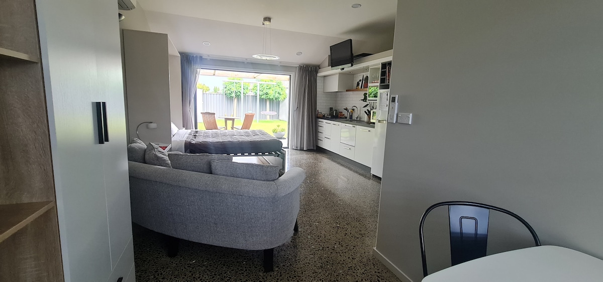 Hart's Place is a private, modern, attached unit. It has all new fittings and furnishings. It is light and warm, with a heated bath room floor, just installed a carbon filter, no more chlorine in the water. Situated in a safe quiet cul de sac and has a tramp and swing for children. In one of Hasting's best and most central suburbs location wise.
