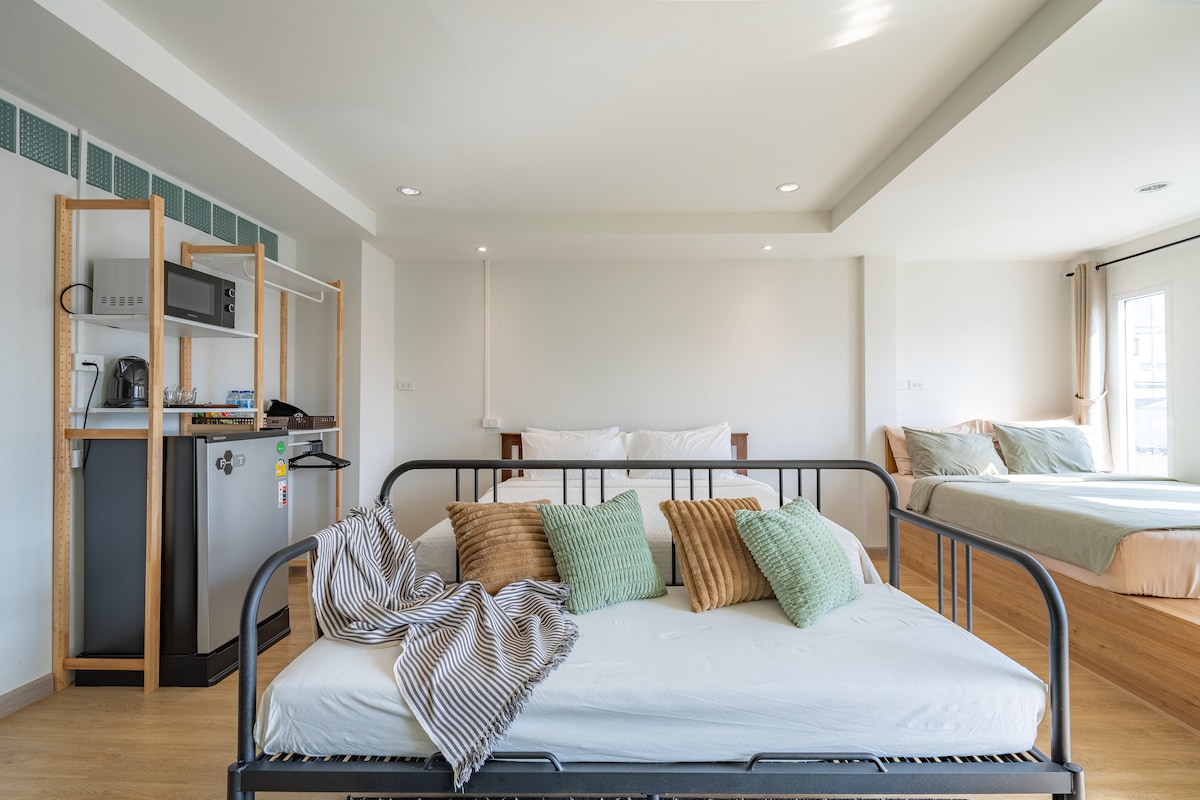 ที่พักเปิดใหม่ใจกลางเมืองหาดใหญ่ เดินทางสะดวก สไตล์มินิมอล,นอร์ดิก ห้องใหญ่28ตรม,2ท่าน/ห้อง ผนัง2ชั้นเก็บเสียง แอร์,ทีวี55นิ้วgoogletv,ตู้เย็น, เครื่องทำน้ำอุ่น,เครื่องฟอกอากาศ,เตียง ไดร์เป่าผม,wifi,cctvวงจรปิด อยู่ใกล้ ห้างHomepro 1นาที ห้างcentral festival hatyai 2นาที ห้างMakro 3นาที โรงพยาบาลสงขลานครินทร์ 10นาที มหาวิทยาลัยสงขลานครินทร์ 10นาที