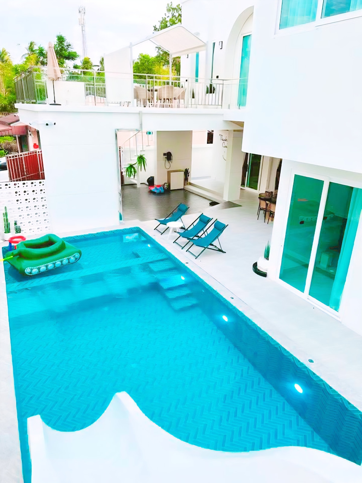 ที่พักบรรยากาศธรรมชาติ กว้างขวาง จอดรถได้หลายคัน เหมาะสำหรับครอบครัวหรือกลุ่มเพื่อนที่ต้องการความเป็นส่วนตัว 🛌 3 ห้องนอน 4 ห้องน้ำ 🛋️ ห้องนั่งเล่น • โซฟา / โต๊ะพูล / สมาร์ททีวี / คาราโอเกะ • โต๊ะทานอาหาร 6 ที่นั่ง • ไมโครเวฟ / ที่ปิ้งขนมปัง / ตู้เย็น / ตู้กดน้ำดื่ม 🍽️ ห้องครัว 🏊🏻‍♂️ สระว่ายน้ำระบบเกลือขนาด 3x7 เมตร พร้อมโซนสำหรับเด็ก 🚗 การเดินทาง 5 นาที ถึงสวนสาธารณะหาดใหญ่ 10 นาที ถึง Hatyai Village 20 นาที ถึง Lee Garden Plaza และ Central Festival Hatyai 30 นาที ถึงชายหาด