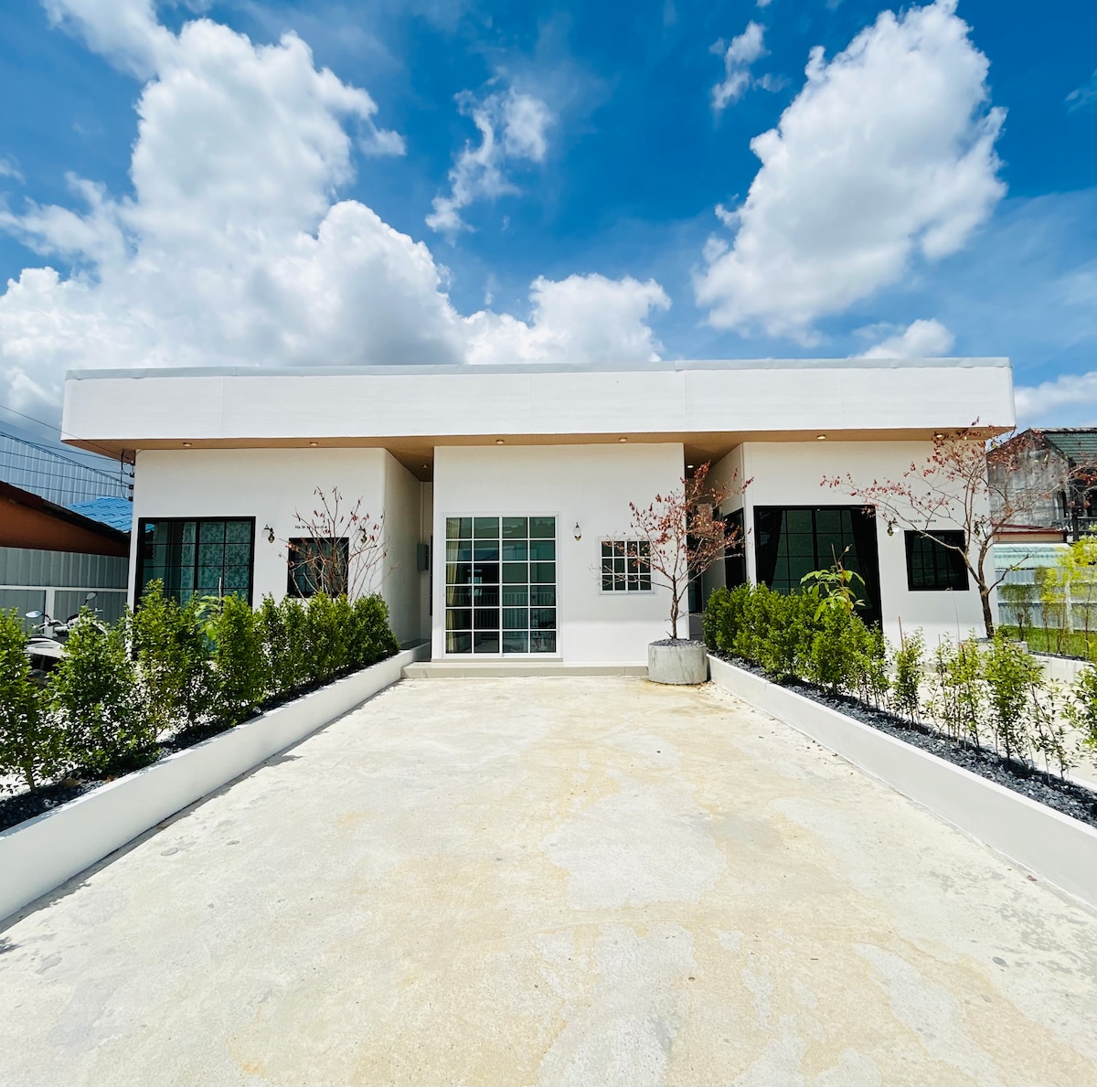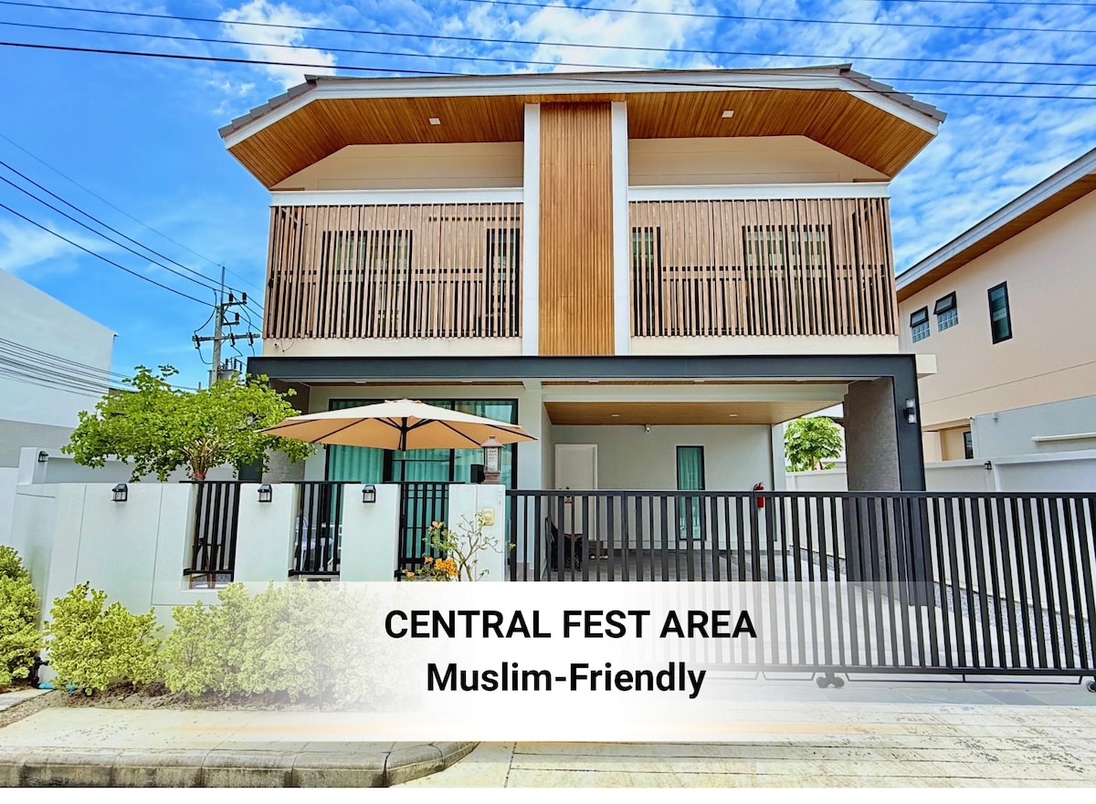 Standard 3 bedroom | 4 bathrooms | 1 living room | 1 prayer room | 3-4 car parking If booking 13 guests or more, we specially setup 4th bedroom. 🏠 Spacious home in city center &🌙 Muslim-friendly. 📍3 mins drive to Central Festival & ASEAN Night Bazaar 📍3 mins walk to 7-Eleven, Mini Big C & local food stalls 📍7 mins drive to Lee Garden, Makro Tuk Tuk passing by.