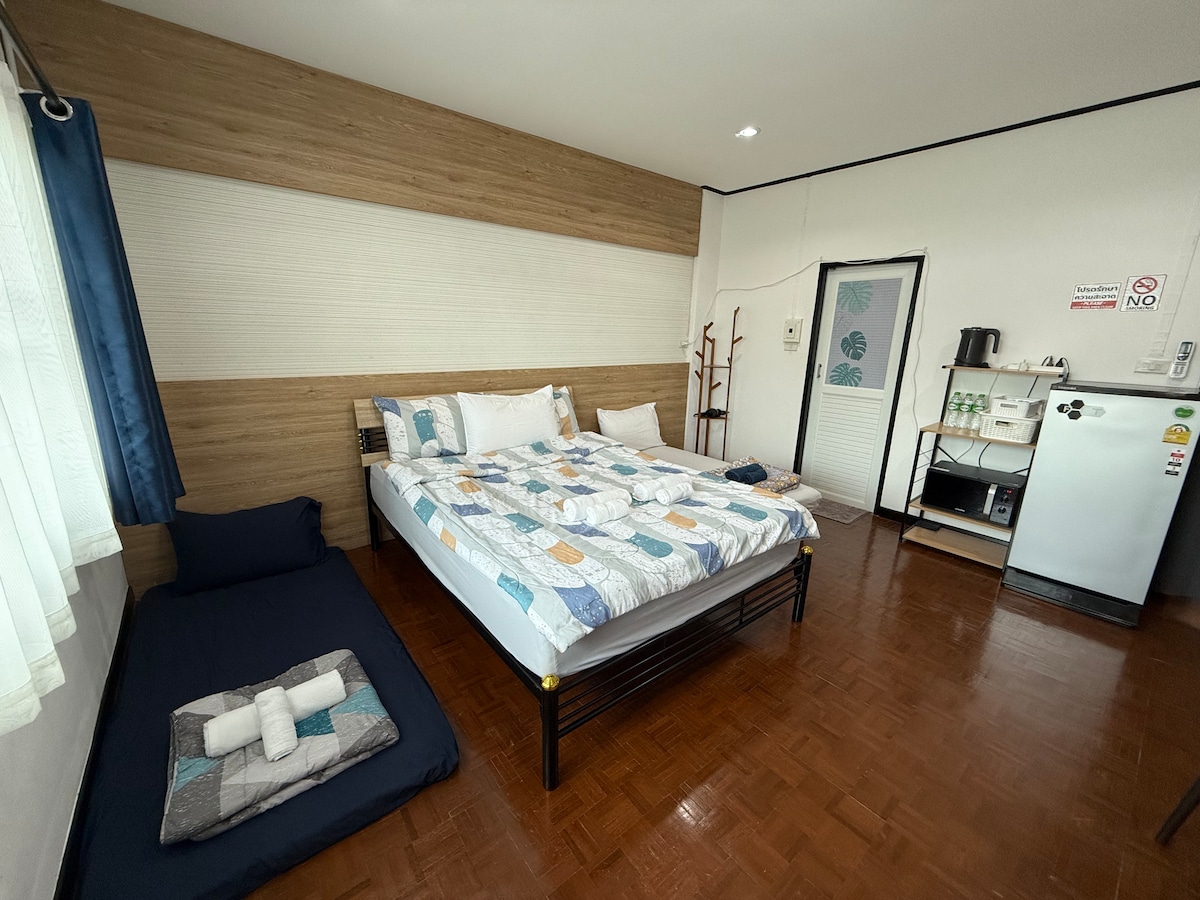 Non-slip bathroom flooring. Newly opened villa in Hat Yai District. The entire villa is air conditioned except for the ironing area. Located near Hat Yai Municipal Park and Hat Yai Village Community Mall. The atmosphere around the village is private and not crowded. The monks quietly come to collect alms in front of the house at 6:30 a.m. There is a village guard 24 hours a day. Our accommodation is registered to welcome tourists properly by law. We require passport pictures of everyone staying.
