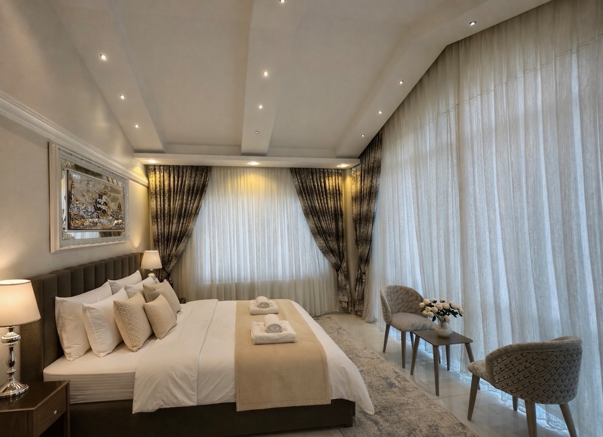 Suit tipimizin özellikleri split klima, 39 inch Lcd televizyon, wireless, kıymetli eşya kasası, berjer koltuk, buzdolabı, ücretsiz çamaşır yıkama hizmeti, karşılama ikramlıkları, kettle, saç kurutma makinesi, ütü & ütü masası, Hilton lavabo, duş ve tuvalettir. Suitimiz 75 m2 büyüklüğünde olup 1+1 olarak iki ayrı yatak odası ve iki ayrı duş ve wc den oluşmaktadır. 4 kişilik olup 4 kişi konaklama yapabilir. Kişi sayısına uygun odalar önerilmektedir. Detaylı bilgi için lütfen iletişime geçiniz…