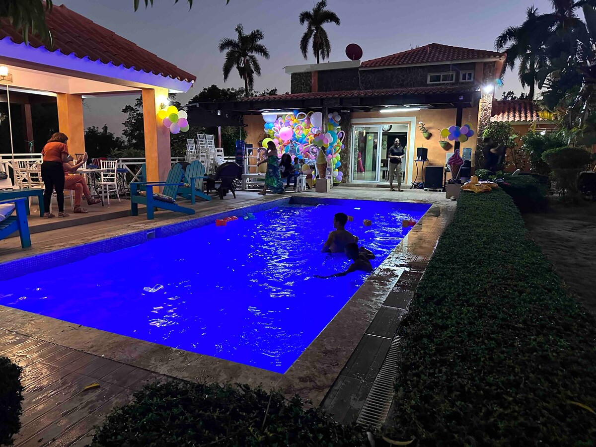 Bienvenido a Don Solano, tu refugio ideal para desconectar en familia Disfruta de una amplia piscina, balcones frescos y habitaciones diseñadas para el confort, a tan solo 40 minutos desde Santo Domingo Este. Amplios espacios permiten que cada persona encuentre su propio ambiente y se sienta completamente cómoda. Con capacidad para 20 huéspedes, es el lugar perfecto para compartir momentos inolvidables. Crea nuevas memorias con tus seres queridos hoy mismo. (Para eventos, text via mensaje)