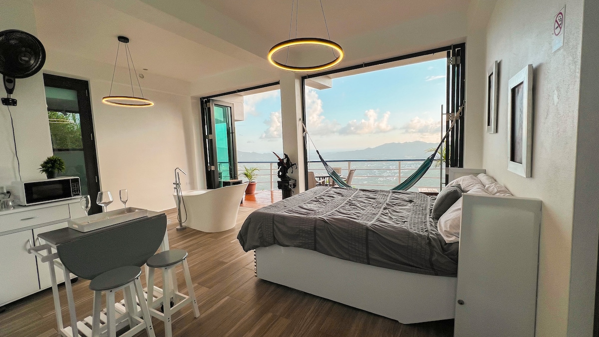 Prepárate para los más espectaculares despertares, viendo el amanecer desde la comodidad de la cama. Pasa horas disfrutando la vista desde una hamaca colgante suspendida en el aire o la terraza o mejor aún relájate en su Jacuzzi Spa con calefacción. El paraíso perfecto para escaparte con tu pareja y conectar por completo con la naturaleza y los encantos de Puerto Rico. Vivirás una estadía de película!