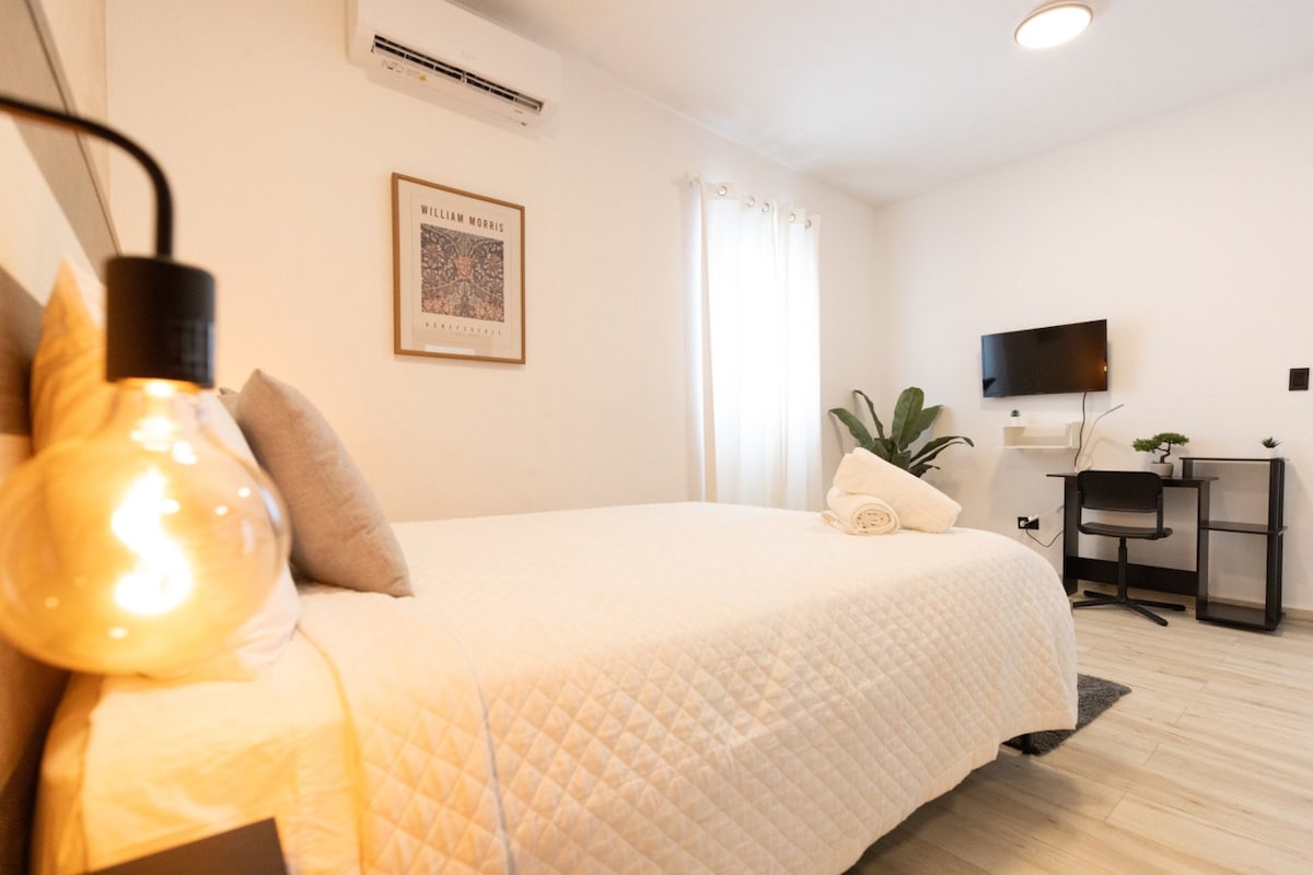 This beautiful one bedroom apartment was entirely renovated and designed for your comfort. You will be sleeping on a brand new and high quality queen size mattress. Enjoy breakfast or just chill anytime on a private and cozy outside patio. Located in the heart of the art district, 5 min walk to 24 hr supermarket, coffee shops, theater and Lote 23 witch is an outdoor park with food stands and bars. Famous club La Respuesta is just up the block. 5 min drive to the beach