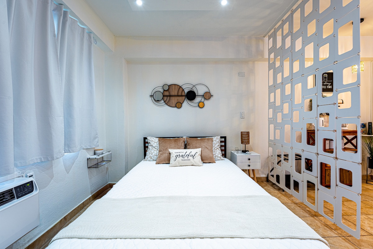 Private Studio Close to Everything! ✨ Enjoy a modern and cozy stay , its own entrance and a charming receiving patio area. Perfect for couples or solo travelers, this studio features: ✔ Comfortable queen bed for a restful night ✔ Small kitchen for light meals ✔ Dedicated work area with desk & free WiFi ✔ Spacious full bathroom ✔ Ice bin and 2 beach towels & chairs ✔ Street parking – always available ✔ Ground floor for easy access Stay in the heart of Hato Rey, just minutes from everything!