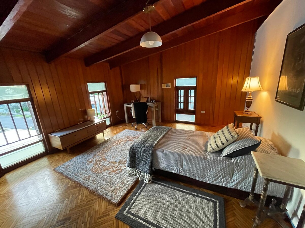Spacious and comfortable home perfect for families and groups. Features 4 bedrooms, 3 full bathrooms, living room, fully equipped kitchen, dining area, and terrace. The master bedroom has a king bed and private bath; two rooms with full beds, and one with two twin beds and one full bed with private bath. Located across from a park, 15 min from beach and airport, 5 min from Plaza Las Américas, and 15 min from Old San Juan and Condado.