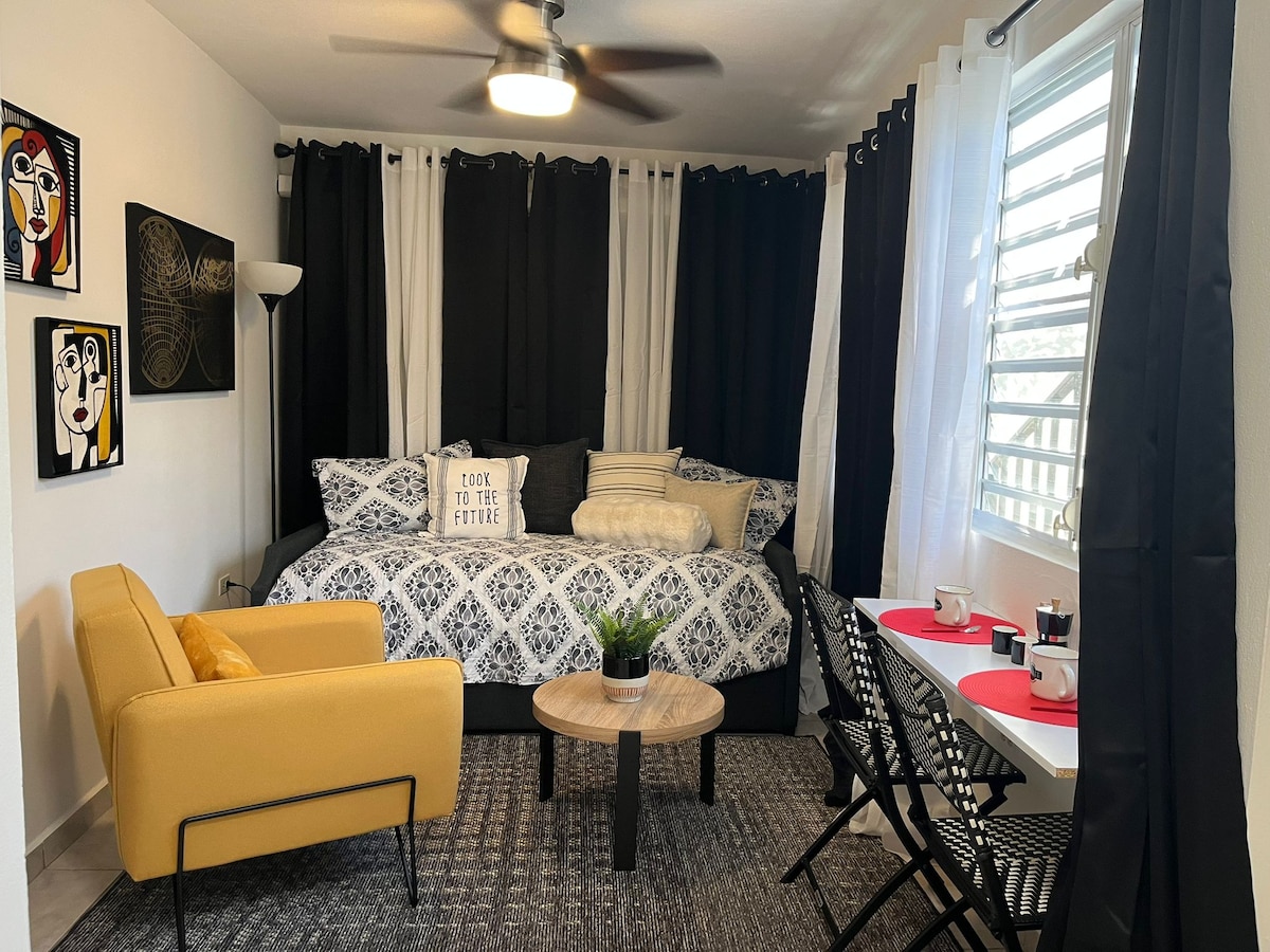 Modern Studio in Hato Rey – Prime Location! Cozy 1BR/1BA studio with all amenities, less than 5 minutes from Plaza Las Américas, Choliseo, Medical Center, and universities. Perfect for students, professionals, and visitors looking for comfort and convenience in San Juan. ✅Full Electric Generator ✅Water Cystern